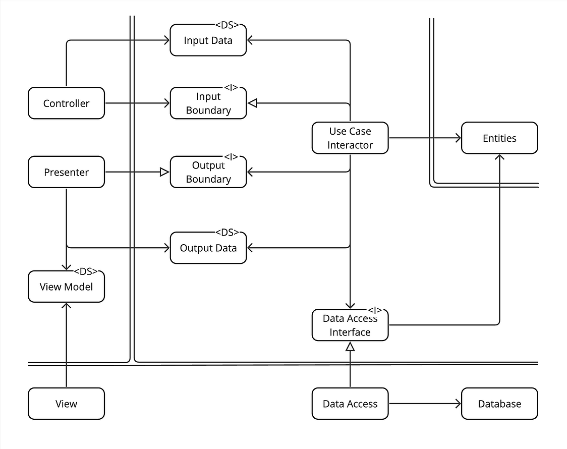 - Interface Adapters : Controllers / Gateways / Presenters